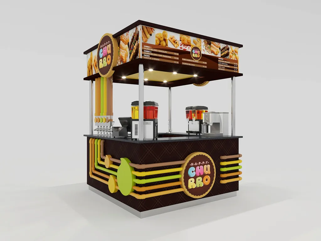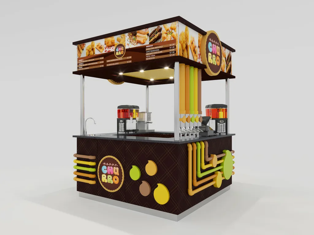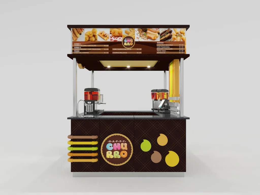 Diseñamos y construimos este stand de ventas para Happy Churro.